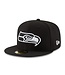 Root your team to the end zone with the Seattle Seahawks New Era NFL Black And White 59FIFTY Cap that features black fabric and team logo combination to make a bold statement. The high crown keeps your head cooleven during stressful replay reviews.
